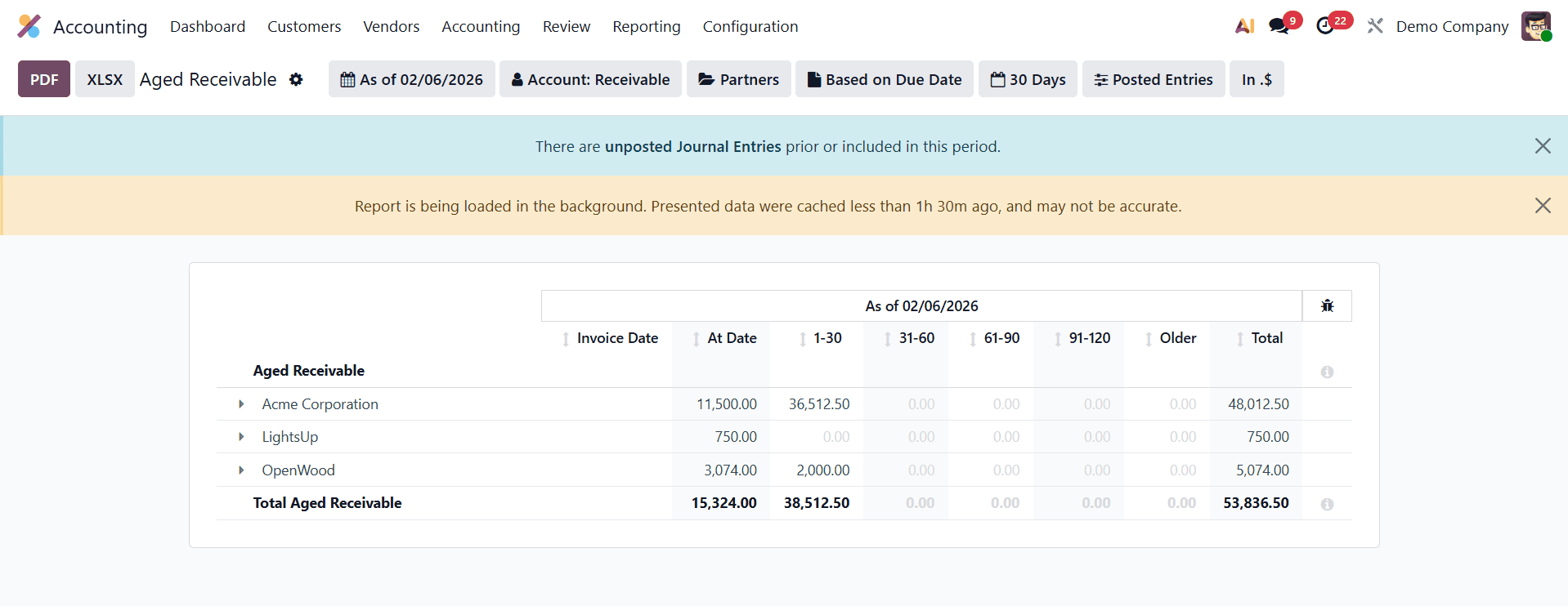 After you make the necessary adjustments to the Aged Receivable report settings, you will see these changes reflected on the reporting platform, as shown in the image below.