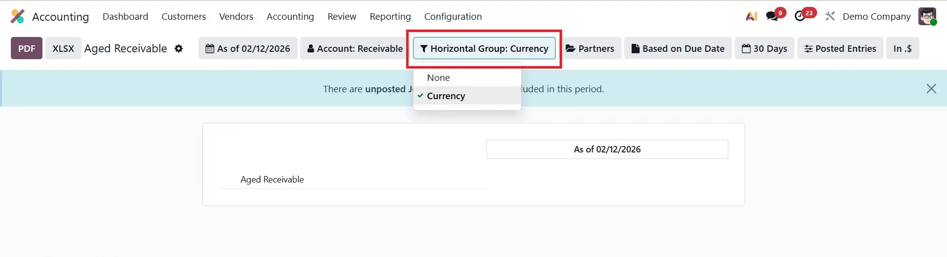 Once you save the data, you will see that the newly generated Currency column has been added to the Aged Receivable report